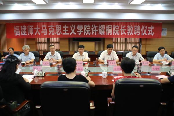 校党委书记李宝银在讲话中指出,马克思主义学院是学校意识形态工作的重要阵地,是加强党的领导、坚持正确办学方向的重要领域。许耀桐教授学术造诣高、学界影响力大,具备丰富的学术领导和行政管理能力,是一位科研能力出众、领导经验丰富、工作作风扎实的综合性高端领军人才。他强调,学校聘任许耀桐教授为马克思主义学院院长,是党委、行政经过通盘考虑、审慎研究作出的决定,学校各职能部门、马克思主义学院全体教职员工要自觉服从学校的安排,迅速把思想和行动统一到学校的部署安排上来,以更高的站位、更优的标准、更实的举措,不断开创全国重点马克思主义学院发展新局面。