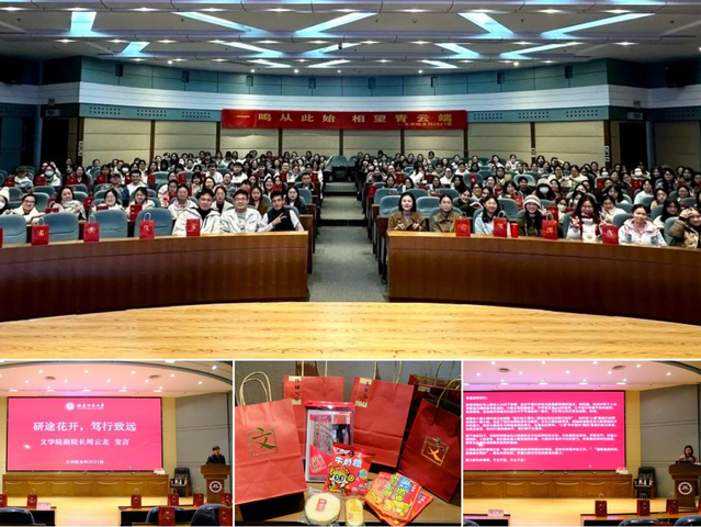 近日,文学院在邵逸夫楼三楼学术报告厅开展“一鸣从此始,相望青云端”考研学子慰问活动。副院长周云龙及2021级全体学生参加。