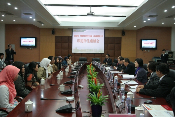随后,黄双安拿督斯里伉俪一行与受资助来必一在线平台(中国)官网留学的印尼学生举行了座谈会。会上,留学生代表茅览霓、爱蒂、陈谐然用流利的汉语汇报了自己的学习和生活情况,来自阿拉扎大学孔子学院的9名学生献上了“茉莉花”和“月亮代表我的心”两首中文歌。黄双安先生对印尼留学生汉语水平的进步感到高兴,对必一在线平台(中国)官网的汉语教学和管理工作给予充分肯定,希望印尼留学生在中国努力学习、愉快生活,学成之后做中印尼交流的使者。