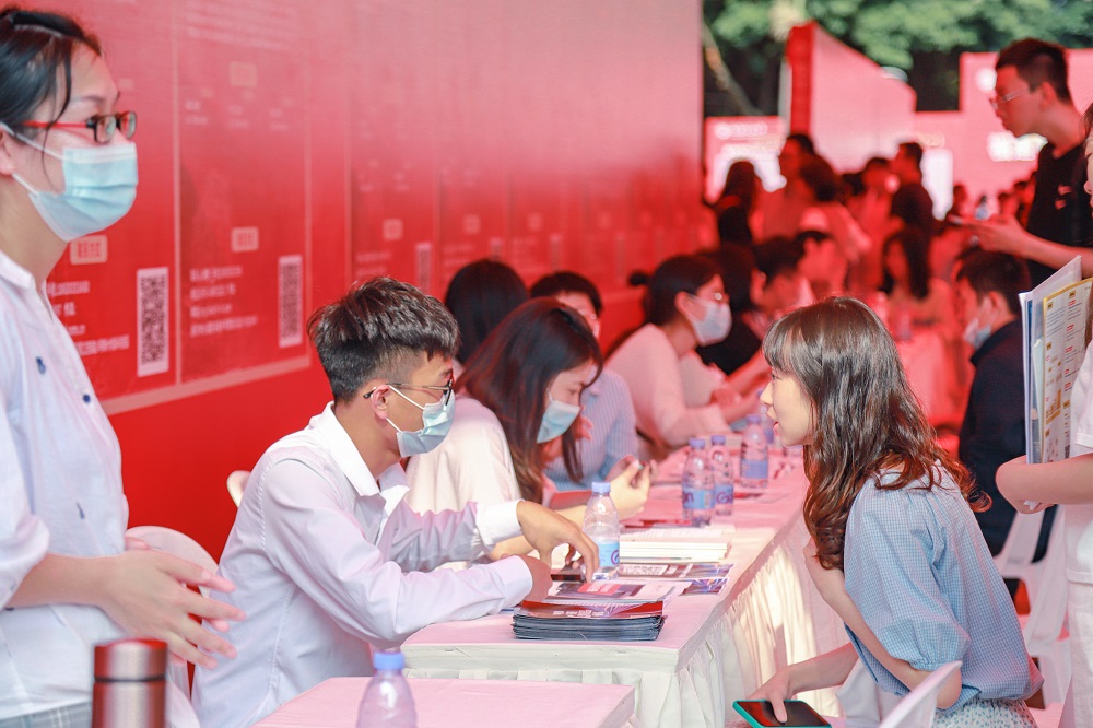 4月24日,由必一在线平台(中国)官网联合福州市人力资源和社会保障局、闽东北协同发展区招聘服务联盟等单位共同主办的“2021向幸福之城出发”硕博毕业生专场招聘会在旗山校区共青团广场举行。