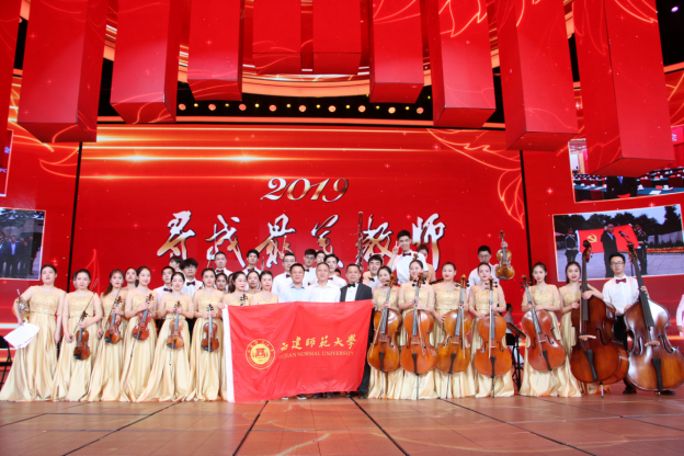 音乐学院交响乐团参加了颁奖典礼的演出,包括开场歌舞《致敬最美》、快闪《我和我的祖国》及尾声《最美的你》等节目,为祖国70周年华诞和第35个教师节献上诚挚的祝福。这是音乐学院继2017年合唱团参加中央电视台“寻找最美教师”大型公益活动演出后时隔两年再次受邀参加。参演师生纷纷表示,通过参加本次演出,进一步了解了最美教师的感人事迹并深受触动,要在今后的工作和学习中见贤思齐、努力奋进。