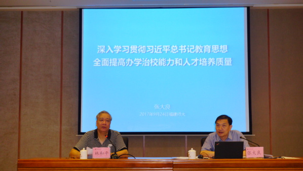 会上,张大良结合自己的研究和实践,在全面梳理习近平总书记关于高等教育的一系列重要论述后指出,深入学习贯彻习近平总书记教育思想,全面提高办学治校能力和人才培养质量,关键在于认认真真研究解决好为谁办大学、办什么样的大学、怎样办大学,为谁培养人、培养什么样的人、怎样培养人,为谁教、教什么、教给谁、怎样教等一系列方向性问题、根本性问题。他强调,要着力抓好三方面工作:一是抓好三项灵魂性工作,即思想政治工作、意识形态工作和党的建设工作;二是抓好八项主体性工作,即学生培养、学风建设、学术活动、学科建设、教师发展、教材更新、教法改进和教规完善;三是抓好四项保障性工作,即资源配置、教学投入、评价改革、激励表彰。