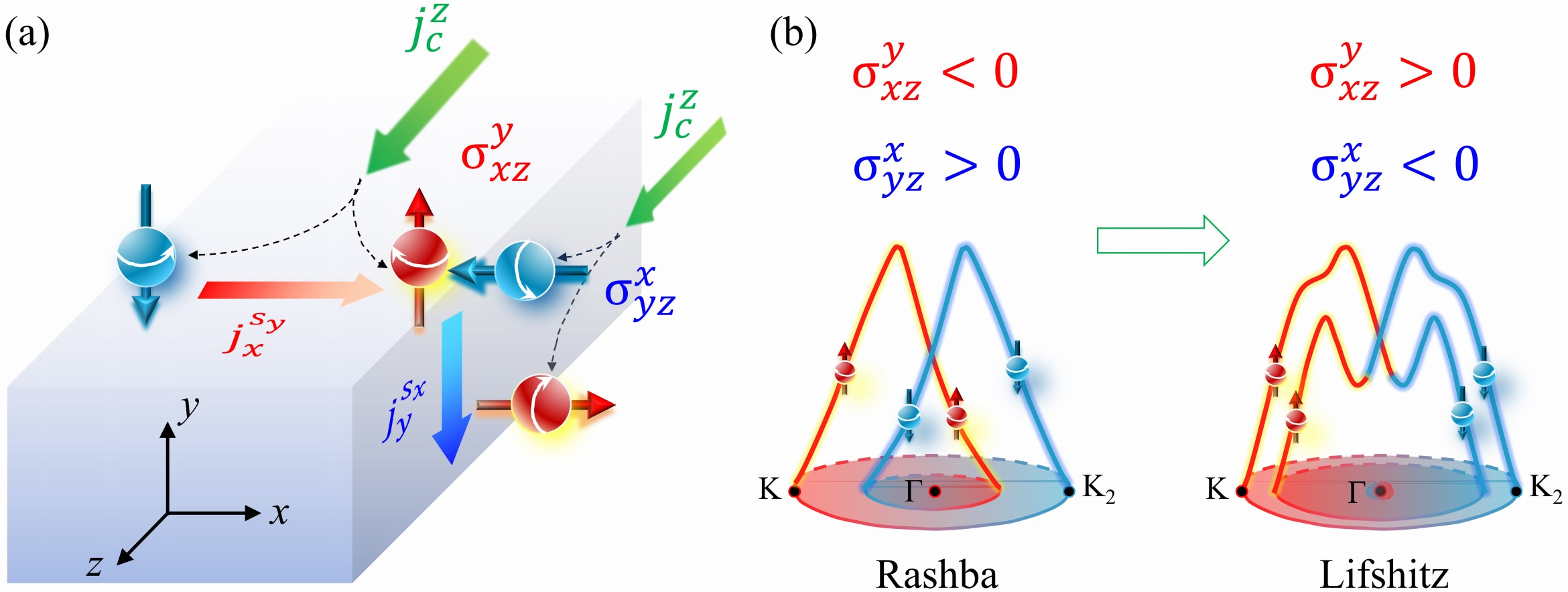 自旋霍尔器件及不同自旋轨道耦合类型调控示意图