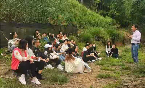 在三明将乐县,副院长蔡炳贵带领同学们就高塘镇常口村生态文明思想的实践转化情况展开实地调研,考察了解当地生态环境建设和乡村产业规划。学院与高塘镇党委举行“课程思政教学实践基地”授牌仪式,围绕生态文明建设课程思政教学实践、“两山”理论实践样本的总结和推广等方面开展座谈交流,为该地的生态环境监测、湿地建设、林下经济建设提供智力支持。