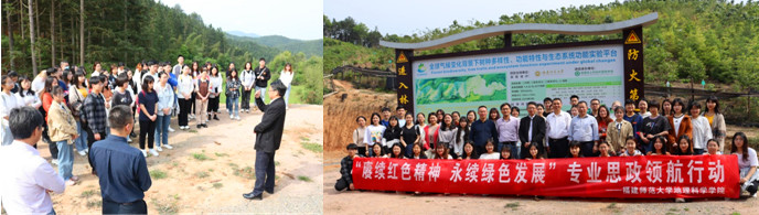 地理科学学院将党史学习教育融入思政育人体系,在学生专业课程实习实训中深入开展“赓续红色精神永续绿色发展”专业思政领航行动,引导学生传承红色文化,深入学习和贯彻习近平生态文明思想。