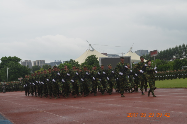 2017级学生军训工作于9月19日上午拉开序幕。在10天艰苦紧张而内容丰富的军训工作中,军训教官严格要求、悉心施教;参训学生团结协作、刻苦训练,展示了高昂的士气和良好的精神风貌;各学院副书记、辅导员亲临训练场,为同学加油鼓劲;各有关部门精心组织、密切配合,提供坚实保障。军训工作取得圆满成功,达到了预期效果。