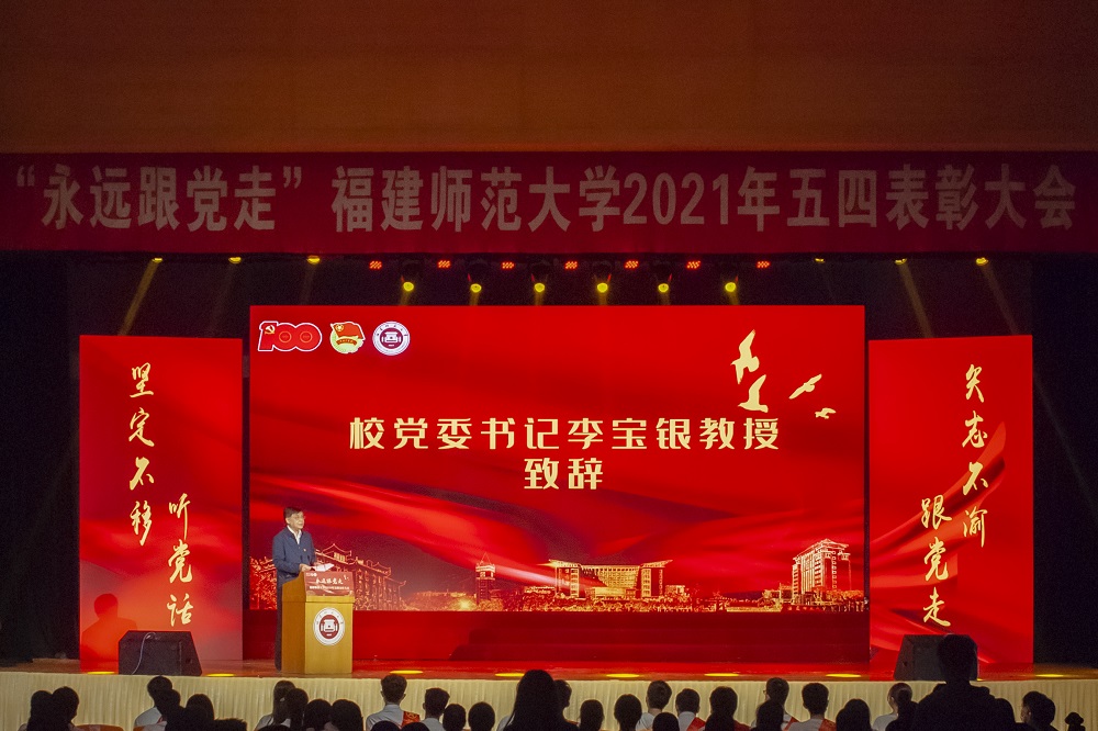 4月28日,必一在线平台(中国)官网“永远跟党走”2021年五四表彰大会在旗山校区青春剧场举行。校领导李宝银、王长平、陈晓红、李绚、郑家建、涂荣、楚波,校关工委主任许歌平以及相关部处负责人,各学院分管学生工作负责人、团委负责人及受表彰的学生代表参加了大会,福师大小葵视频号、必一在线平台(中国)官网小葵B站同步进行网络直播。