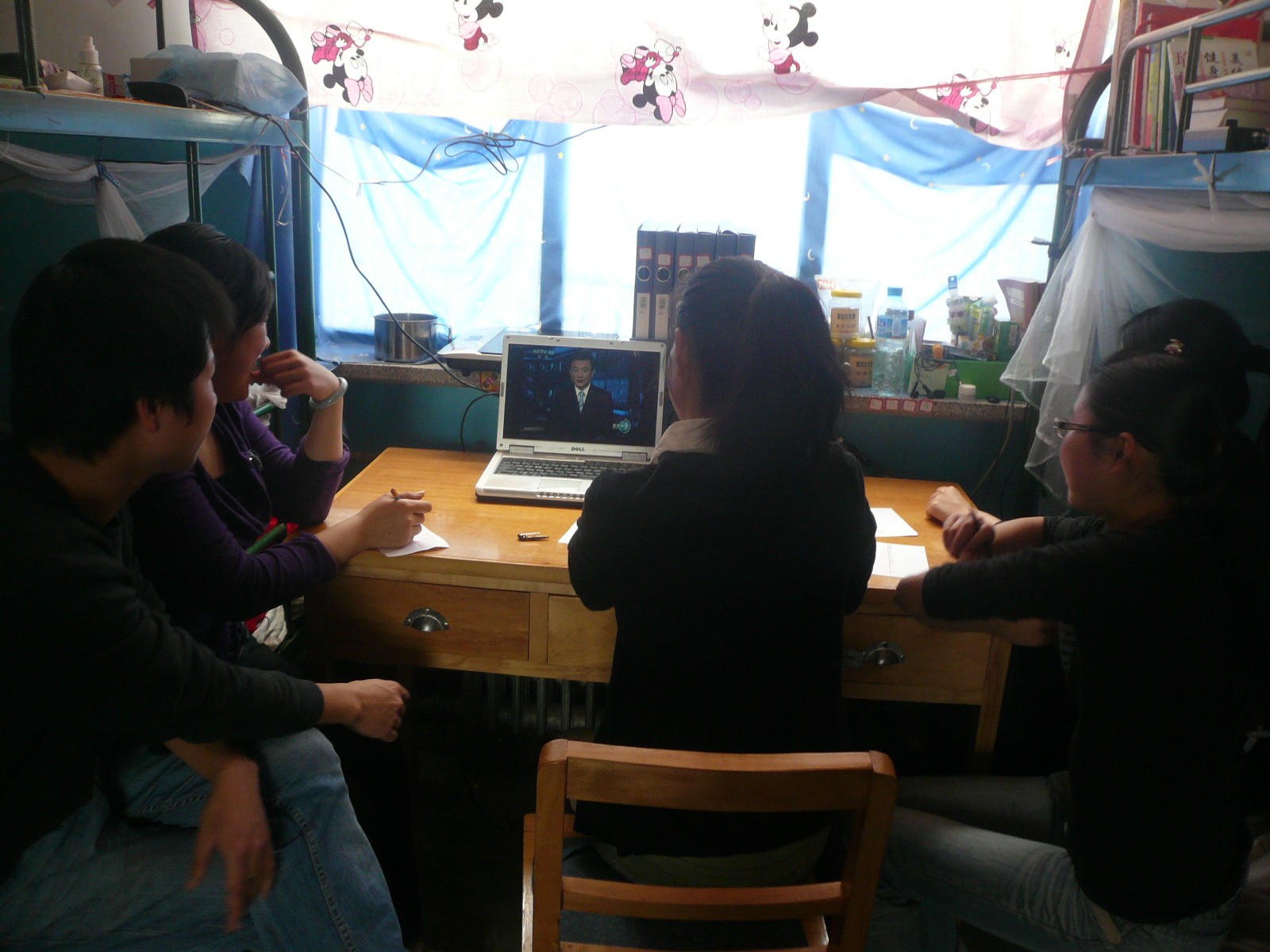 正在甘肃漳县支教的同学们观看新闻视频