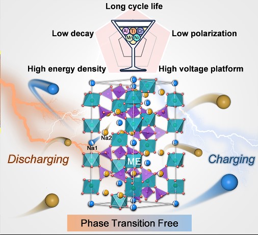 近日,必一在线平台(中国)官网吴小慧副教授、赵毅研究员和西北工业大学黄维院士合作,构建了一种具有强ME─O键和高占据Na2位点的中熵材料(Na₃.₂V₁.₁Ti₀.₂Al₀.₂Cr₀.₂Mn₀.₂Ni₀.₁(PO₄)₃,简称ME-NVP),以解决磷酸钒钠的应用问题。研究通过全面的原位/非原位表征,验证ME-NVP不仅可在3.4 V(V³⁺/V⁴⁺)和4.0 V(V⁴⁺/V⁵⁺)处具有两个可逆平台,并在Na⁺插层/脱出过程中展现出无相变反应机制,呈现较小的体积变化(2%)。此外,动力学分析揭示了ME-NVP优越的Na⁺扩散能力。因此,得益于中熵效应,ME-NVP正极在超过10000次循环后仍能保持81.3%的容量,展现出出色的使用寿命。理论计算进一步说明,Na⁺在通道中的弱结合力是其快速扩散的原因,这也是其优异反应动力学的根本所在。此外,刚性的MEO₆八面体结构和Na⁺离子重排能够抑制相变,从而赋予ME-NVP正极优异的稳定性。相关研究成果发表于《Advanced Materials》上。