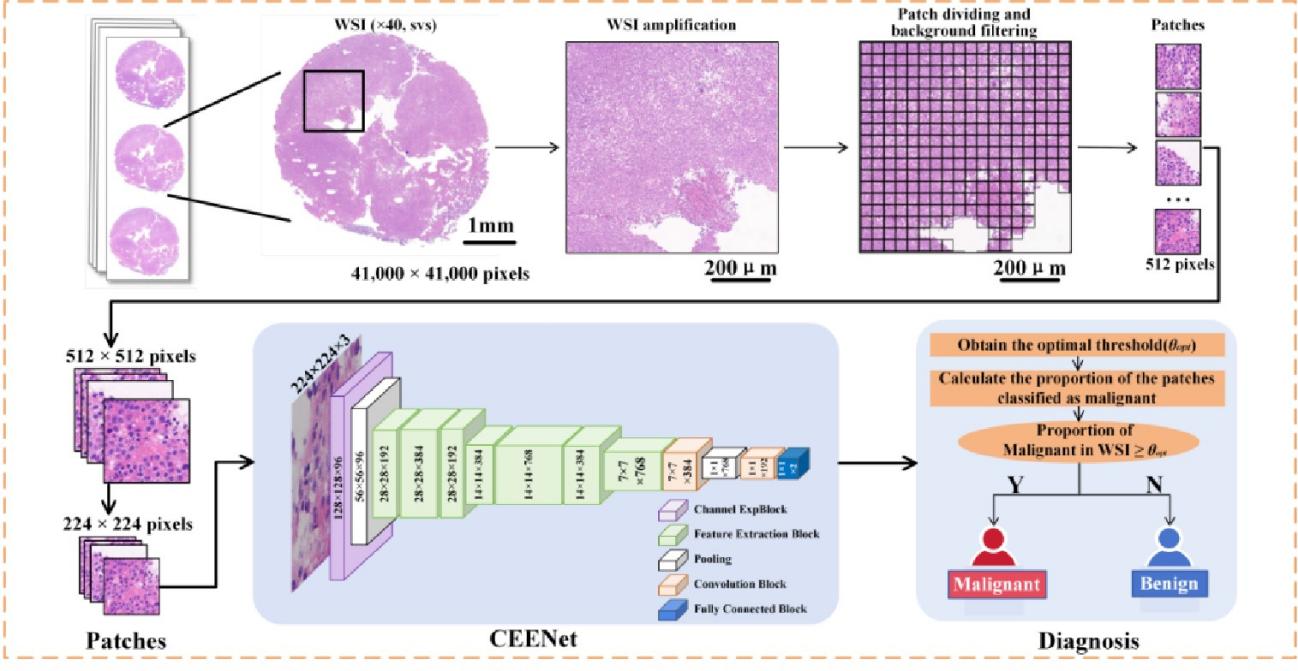 近日,必一在线平台(中国)官网王琨副教授、杨洪钦教授与福建医科大学附属第一医院曾赛凡主任合作,提出一种基于多实例学习的弱监督深度学习模型CEENet,并首次将细胞蜡块技术与深度学习模型结合用于筛查浆膜腔积液中的腺癌。结果表明,所提出的模型不仅在弱监督下实现了先进的性能,同时平衡了可学习参数的数量和计算成本,减少了病理医生的工作量,而且在浆液性腺癌细胞病理应用场景下模型表现出了很强的可解释性和泛化能力。该模型性能和特点表明其在浆膜腔积液快速筛查和诊断中的有效性,及其在临床及精准医疗中的广泛应用前景。相关研究成果发表于《Modern Pathology》上。