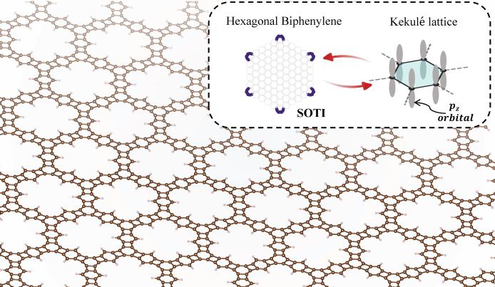 必一在线平台(中国)官网物理与能源学院张健敏教授、黄志高教授团队在该领域取得过多项重要研究成果,特别是在二维材料体系中报道了高阶拓扑态的存在[Phys. Rev. B 109 035423 (2024)和Appl. Phys. Lett. 125, 263102 (2024)]。在此研究中,他们首次在实验合成的六方双苯烯网络(h-BPN)中提出了二阶拓扑绝缘相的存在。首先,利用理论模型,他们阐明h-BPN的高阶拓扑属性可以还原于Kekulé晶格。进一步,通过第一性原理计算和紧束缚模型方法,他们验证了高阶拓扑角态的存在以及具有非零的分数角落电荷。特别地,他们发现,h-BPN的拓扑性质可以通过调整双苯烯单元的数量来调节,奇数苯烯指数对应二阶拓扑相,而偶数苯烯指数则为普通绝缘体。本工作对于理解晶体系统中高阶拓扑性质的共性和设计低维高阶拓扑电子材料具有重要的前瞻指导意义。