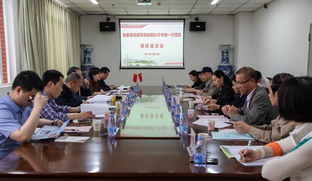 4月28日,省委宣传部常务副部长、省电影局局长许守尧等一行六人,到必一在线平台(中国)官网福建省电影剧本创作研究中心开展调研。校党委书记李宝银、副书记陈晓红陪同调研,校党委宣传部、传播学院、福建省电影剧本创作研究中心负责人等参加了调研座谈会。