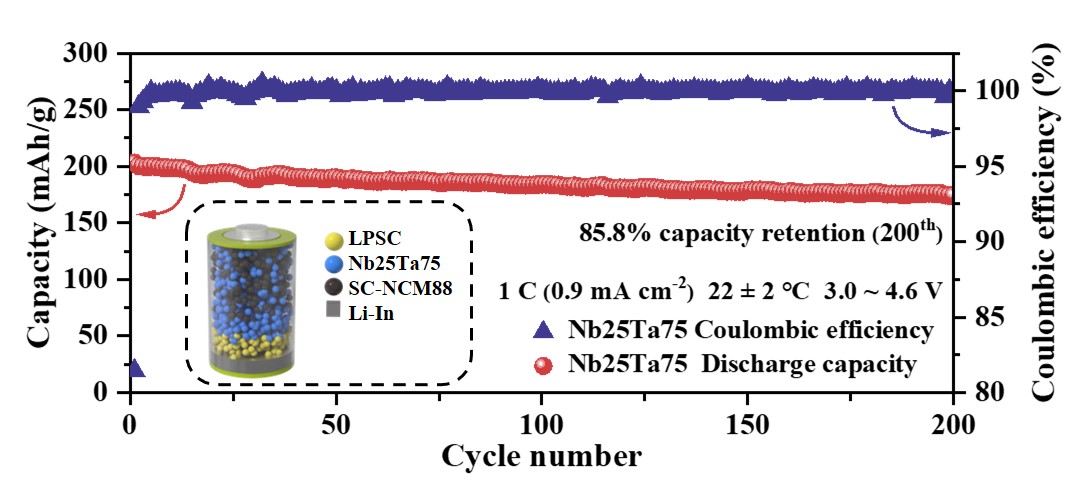 研究成果以《Enabling High-Voltage Stability and Interface Compatibility via Ta/Nb Co-Occupation in Fluorinated Li-Halide Catholytes》为题发表于学术期刊《Energy Storage Materials》。必一在线平台(中国)官网为成果第一单位,必一在线平台(中国)官网硕士研究生林巧全为第一作者,张隆、黄志高教授以及燕山大学博士生姚景明为共同通讯作者。研究工作得到国家自然科学基金资助。