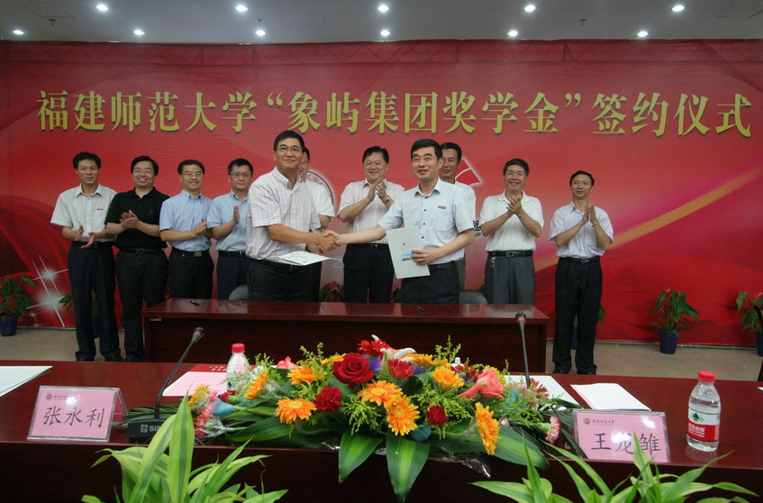 签约仪式于6月28日上午在旗山校区第十会议室举行。厦门象屿集团有限公司党委书记、董事长王龙雏、总裁张水利一行9人,校党委副书记游小波,学工部(处)、研工部负责人,经济学院党政领导及师生代表参加了签约仪式。签约仪式之前,校党委罗萤书记会见了来宾。