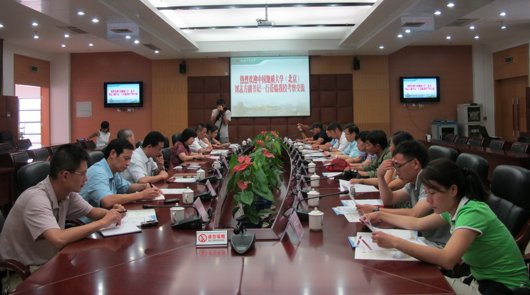 7月9日上午,中国地质大学(北京)党委副书记刘志方一行11人,在省教育厅体卫艺教处张海明处长的陪同下来校考察交流高校体育工作情况。李敏副校长,学校办公室、体育科学学院等单位负责人会见了来访客人,并陪同参观了老照片展、旗山校区沙盘、校园和体育场馆。