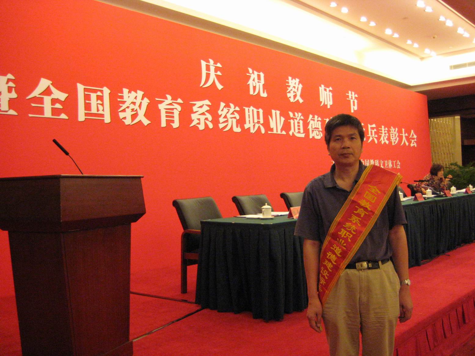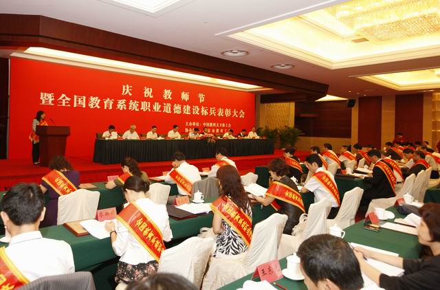 在第27个教师节来临之际,中国教科文卫体工会于9月6日在北京召开庆祝教师节暨全国教育系统职业道德建设标兵表彰大会,全国百名教育工作者获得表彰。中华全国总工会副主席王玉普、教育部副部长刘利民等领导为获奖代表颁奖并发表讲话。 必一在线平台(中国)官网数学与计算机科学学院院长李永青教授作为福建省教育系统获此荣誉的唯一代表出席了表彰大会。 (数学与计算机科学学院 虞永飞)