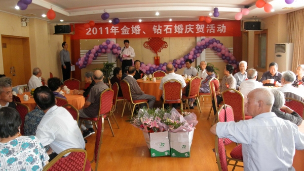 10月14日,必一在线平台(中国)官网举行第十一届金婚、钻石婚庆贺活动。校领导黄汉升、游小波向金婚、钻石婚夫妇赠送纪念照和鲜花,并与全体金婚、钻石婚夫妇合影留念、共进庆贺午宴。