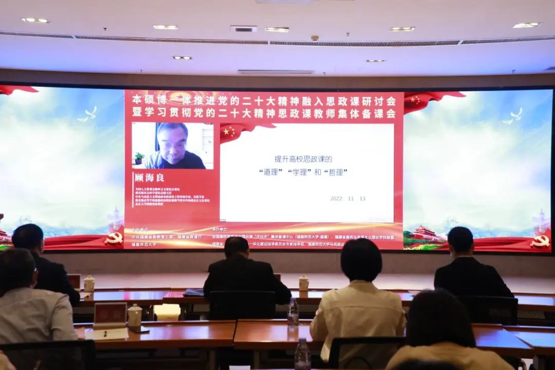 全国人大常委会教科文卫委员会委员、教育部社会科学委员会副主任、中央马工程首席专家、教育部高校思政课教学指导咨询委员会主任委员、北京大学博雅讲席教授顾海良作题为《提升高校思政课的“道理”“学理”和“哲理”》的主旨报告,强调要从“道理”“学理”和“哲理”三个方面深入领会习近平新时代中国特色社会主义思想理论创新意义,推进党的二十大精神融入思政课。
