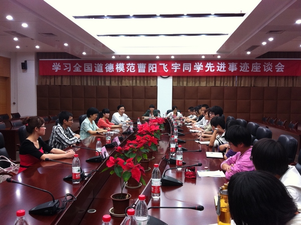报告会后还举行了学习全国道德模范曹阳飞宇同学先进事迹座谈会。参加座谈的各校学生代表纷纷表示十分钦佩曹阳飞宇同学,将以他为榜样,努力学好科学文化知识,回报恩亲、奉献社会。