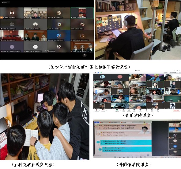 实验实践课堂推陈出新。法学院探索《模拟法庭》“云实战”,实现线上实训翻转;音乐学院、外国语学院针对语言训练课程特点,实现学生训练与教师示范在线上有效融合;生命科学学院持续优化云端实验课,利用小组实验、知识拓展等不断调动学生学习主动性。