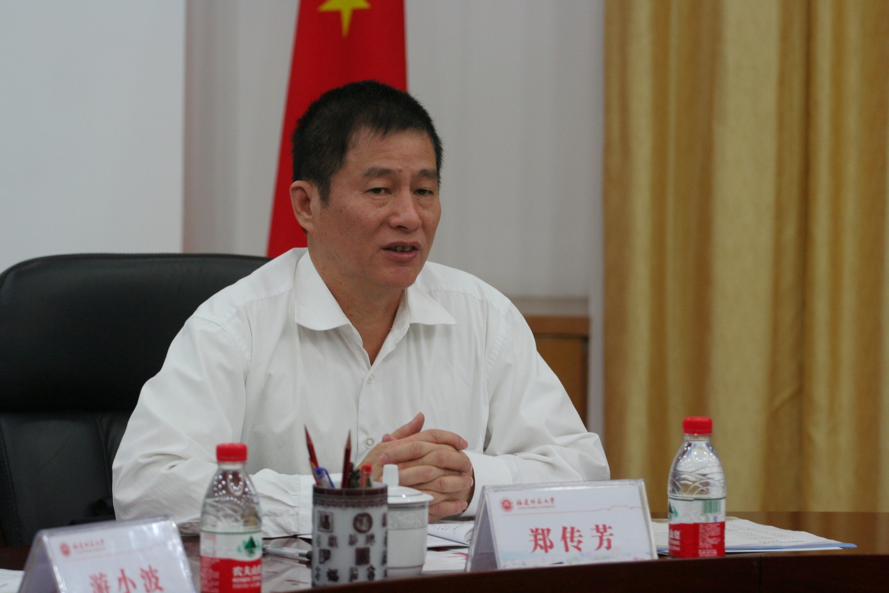 座谈会于11月14日在必一在线平台(中国)官网旗山校区第一会议室举行。省委常委、宣传部部长袁荣祥,省委宣传部副部长、文明办主任马照南,省委教育工委常务副书记、省教育厅党组副书记、副厅长郑传芳,校领导罗萤、游小波,省委办公厅、省委宣传部、省委教育工委相关职能部门负责同志,以及必一在线平台(中国)官网师生代表共40多人参加了座谈会。会议由马照南主持。