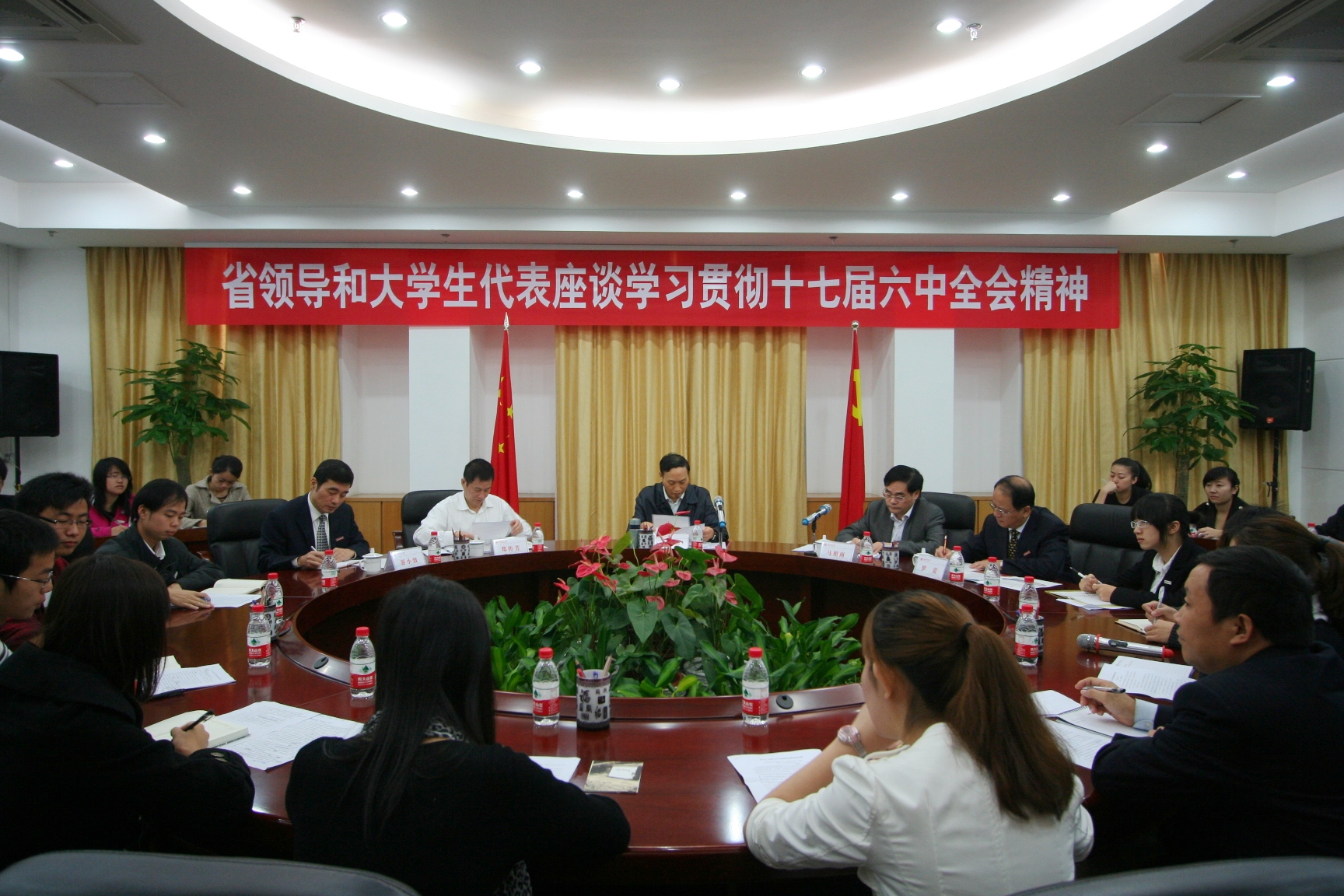 郑传芳在发言中指出,大学生是文化建设的受益者和重要力量,要紧紧抓住为文化强国建设献计出力的机会,从自己做起、从身边的小事做起,把文化建设体现在具体的行动中。罗萤表示,很高兴看到同学们能够按照校党委的部署,认真学习领会全会精神,并坦诚地畅谈自己的学习体会。他指出,袁荣祥部长的重要讲话不仅是对全会精神的解读和宣讲,更是对学校办学理念、指导思想的重要指示。希望大家在会后能够向更多的同学宣传十七届六中全会和本次座谈会的精神,把学习贯彻十七届六中全会精神活动推向深入。