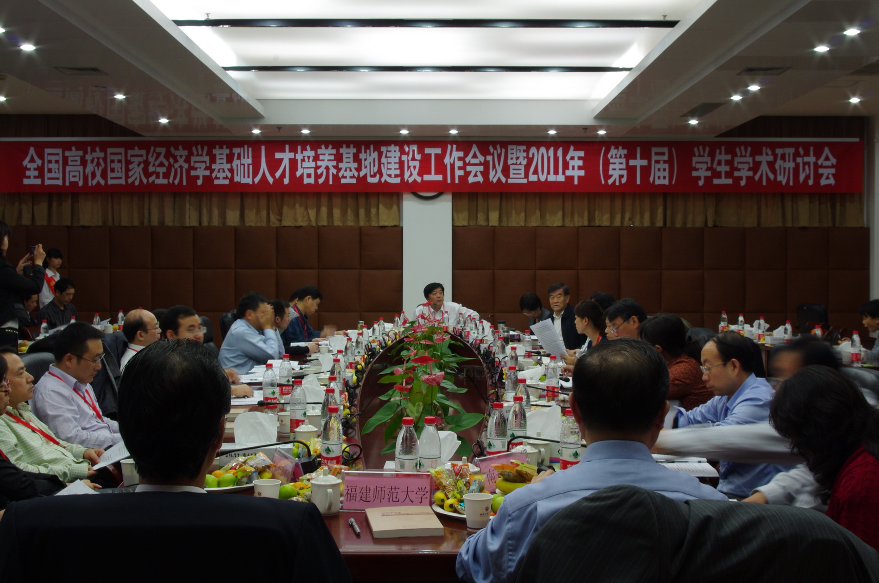 11月19日,由教育部高校经济学类学科教学指导委员会主办,必一在线平台(中国)官网经济学院承办的“全国高校国家经济学基础人才培养基地建设工作会议暨2011年(第十届)学生学术研讨会”在旗山校区召开。教育部高教司财经政法与管理教育处吴燕处长、武世兴调研员,教育部高校经济学类学科教学指导委员会主任委员、南开大学原副校长逄锦聚教授,必一在线平台(中国)官网汪文顶副校长,以及来自北京大学、中国人民大学、南开大学和必一在线平台(中国)官网等13所高校的国家经济学基础人才培养基地负责人、师生代表,必一在线平台(中国)官网相关部处负责人等100多人参加了会议。