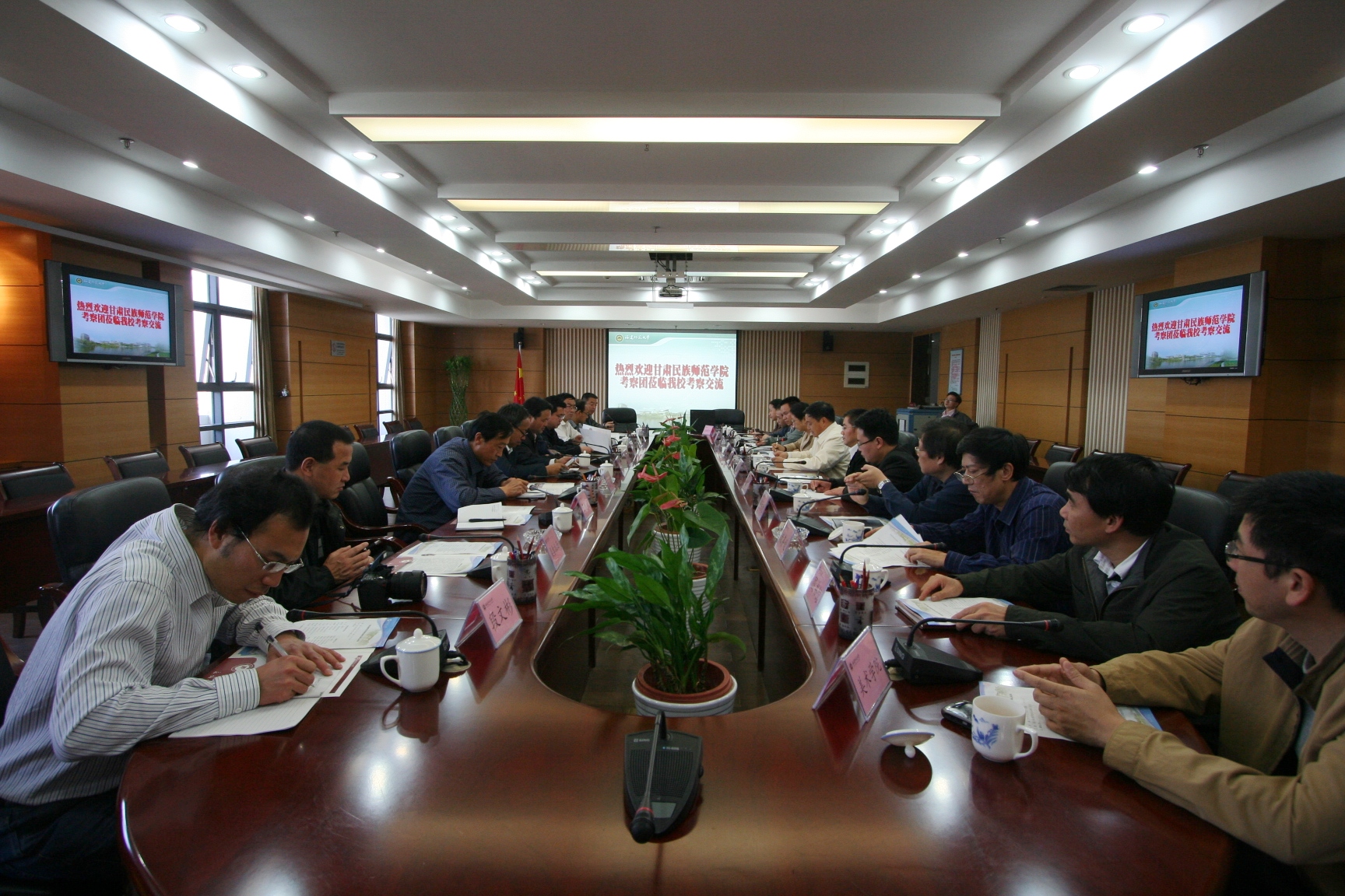 11月22日下午,甘肃民族师范学院考察团一行10人来校考察交流。凌启淡副校长,学校办公室、组织部、学工部、人事处、教务处、科技处、后勤管理处、图书馆、音乐学院、美术学院、继续教育学院等单位负责人和有关同志参加了座谈会。 会上,双方围绕“十二五”规划制定情况,教育教学改革做法,对口专业的教学、科研、实验室建设、课程改革等方面内容展开了深入的探讨和交流。客人们还参观了陈宝琛藏书室、老照片馆、旗山校区校园和全景沙盘。 (学校办公室 曾祥能)