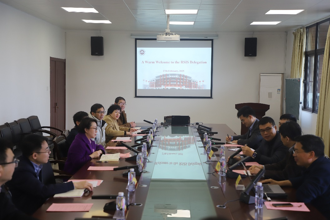 2月27日,新加坡南洋理工大学拉惹勒南国际研究院(RSIS)国防与战略研究所副所长陈大伦、研究生院负责人李明江、国际关系理学硕士项目副主任何子恩、美国项目副研究员陈贤安和暨南大学东南亚研究中心主任张云莅校调研。校社科处处长张梅,社会历史学院党委书记陈尚旺、院长孙建党,外国语学院副院长尤泽顺等参与交流。