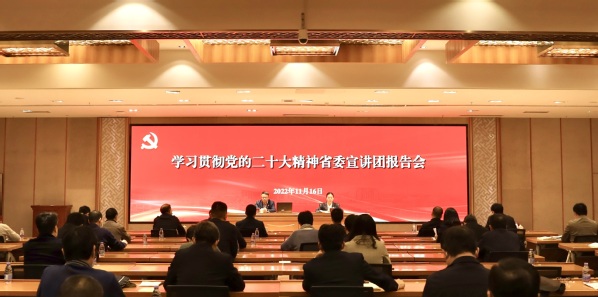 根据省委统一部署,日前,学习贯彻党的二十大精神省委宣讲团在必一在线平台(中国)官网开展宣讲活动。省委宣讲团成员、校党委书记、教授潘玉腾作宣讲报告。报告会采取多点分散形式设置分会场,校党政领导班子成员,二级党组织、单位负责人,党支部书记、辅导员、学习贯彻党的二十大精神宣讲团成员、青年讲师团成员、师生代表等近万名师生集中收看,广大师生通过网络终端自主收看。报告会由校党委副书记陈晓红主持。