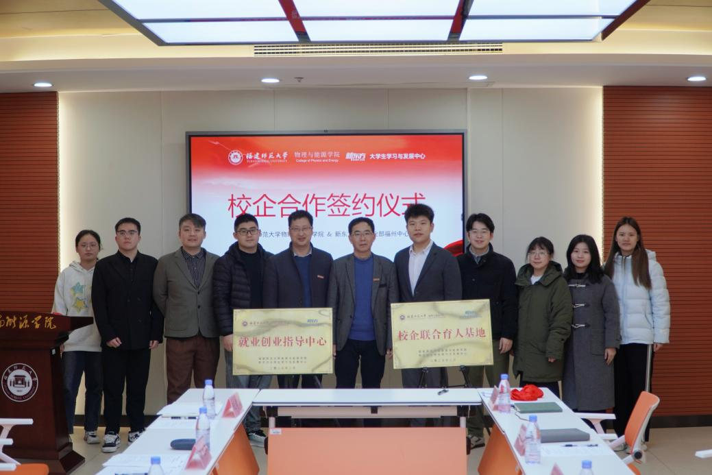 3月6日,物理与能源学院与新东方大学事业部福州中心举行校企合作签约仪式。学院党委书记林玉辉、副书记阮学旺,新东方大学生学习与发展中心福州中心校长沈博文,以及双方有关人员参加仪式。