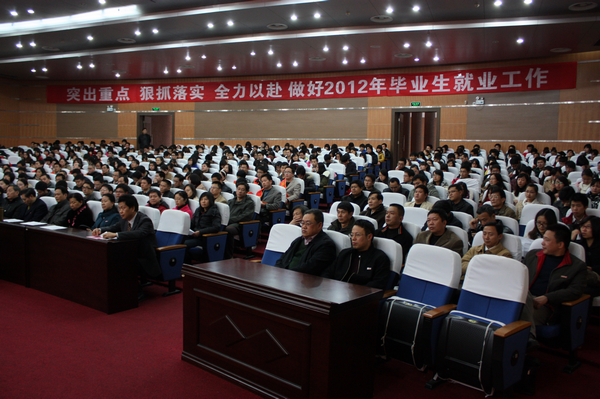 罗萤书记在会上讲话,指出学校认真贯彻落实党中央、国务院和省委、省政府有关毕业生就业工作的决策部署,紧紧围绕让毕业生“好就业、就好业”的工作目标,不断完善政策措施,狠抓工作落实,在上级主管部门的关心指导下,在全校教职员工的共同努力下,圆满完成了2011年毕业生就业工作目标任务。2012年,面对依然严峻的就业形势,要继续全力以赴做好毕业生就业工作,确保毕业生就业率基本稳定、就业质量进一步提高和毕业生的安全稳定。重点要抓好七个方面工作:一是加强领导,切实把毕业生就业工作摆在突出重要位置;二是落实政策,大力引导毕业生面向基层和生产一线就业;三是强化培训与指导,积极鼓励和扶持毕业生自主创业;四是加强内涵建设,不断提升就业指导服务水平;五是多措并举,促进特殊群体毕业生顺利就业;六是深化教育教学改革,提升毕业生就业核心竞争力;七是加强思想政治教育,确保毕业生就业安全和校园和谐稳定。