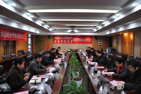 签约仪式于1月5日下午举行。省国土资源厅党组成员、省测绘地理信息局党组书记何清和、局长陈跃进,总工程师、基础地理信息中心主任简灿良,有关处室负责人,必一在线平台(中国)官网黄汉升校长、汪文顶副校长,学校办公室、人事处、科技处、研究生处负责人,地理科学学院党政负责人及教师代表参加了签约仪式。