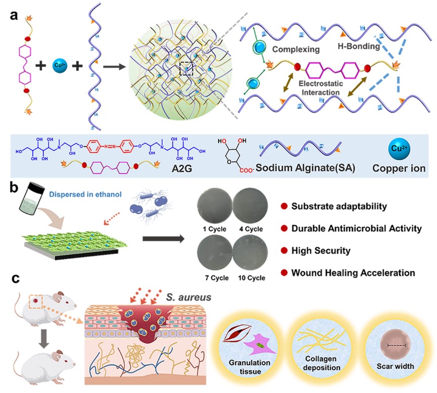 全球新冠疫情的爆发,加速了医疗材料领域的革命性升级。面对传统抗菌剂因耐药性加剧和时效性不足所带来的严峻挑战,必一在线平台(中国)官网化学与材料学院朱虎教授与王雪娇副教授团队,凭借在“超分子工程+生物医学”交叉领域的深厚积累,突破性研发出“水不溶性”超分子沉淀材料A2G-Cu-SA,为全球日益增长的抗感染需求提供了一种长效抗菌解决方案。