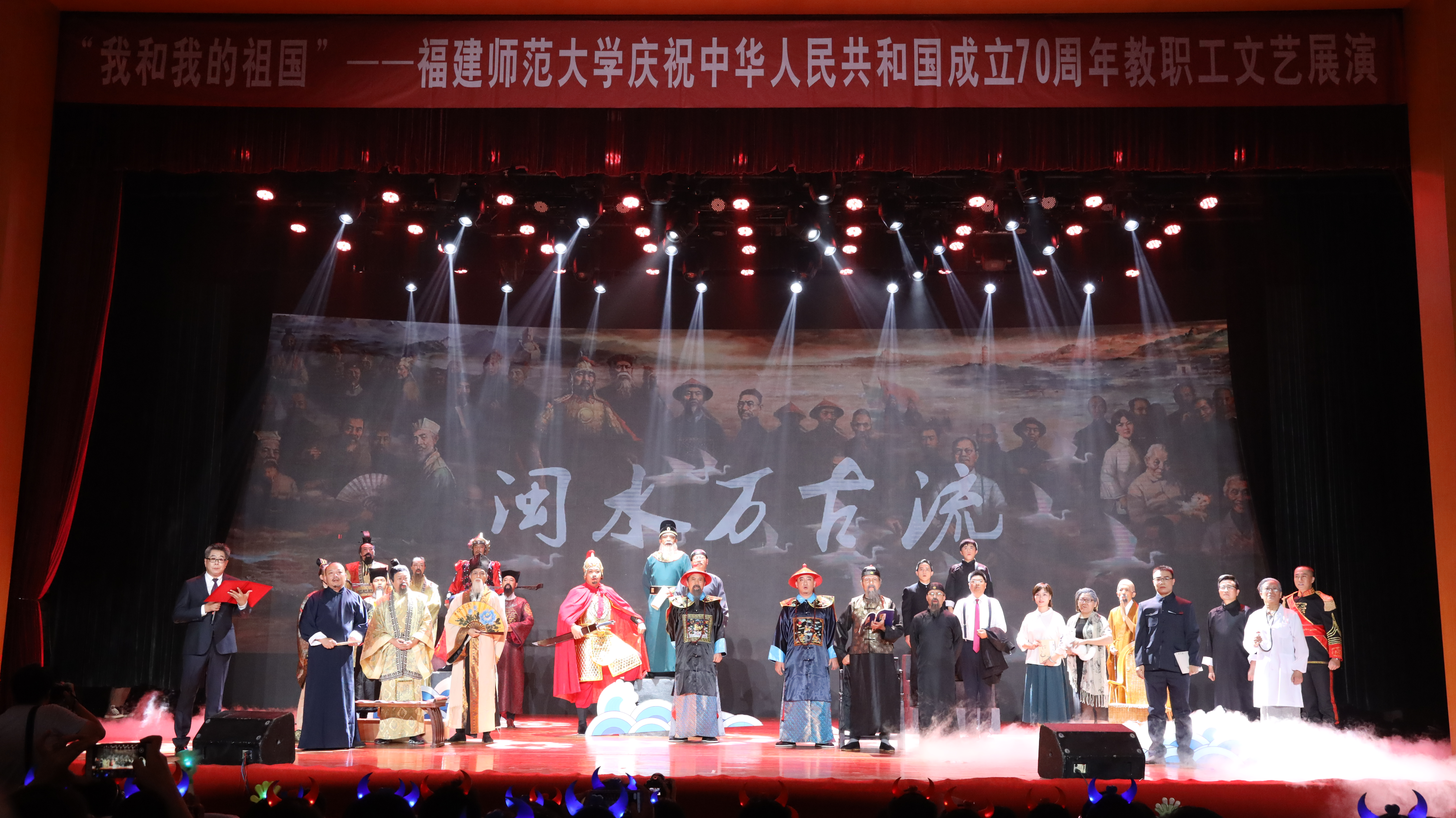 演出中,广大教职工用歌舞、朗诵、情景剧等形式多样的作品热情讴歌了中华人民共和国成立70年以来取得的辉煌成就,充分展现了爱党爱国、奋发进取的良好精神风貌,进一步树牢了当好主力军、建功新时代的信念。