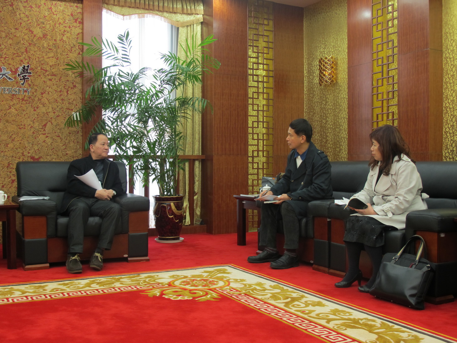 罗萤书记热烈欢迎3位校友的到来。他说,今年适逢母校建校105周年,预祝台湾校友会尽早正式成立,热忱欢迎台湾校友届时组团参加母校105周年校庆,并希望通过校友会的平台,推动两岸校友密切联系、加强沟通,在学术交流、人才培养等领域有更深入的交流与合作。