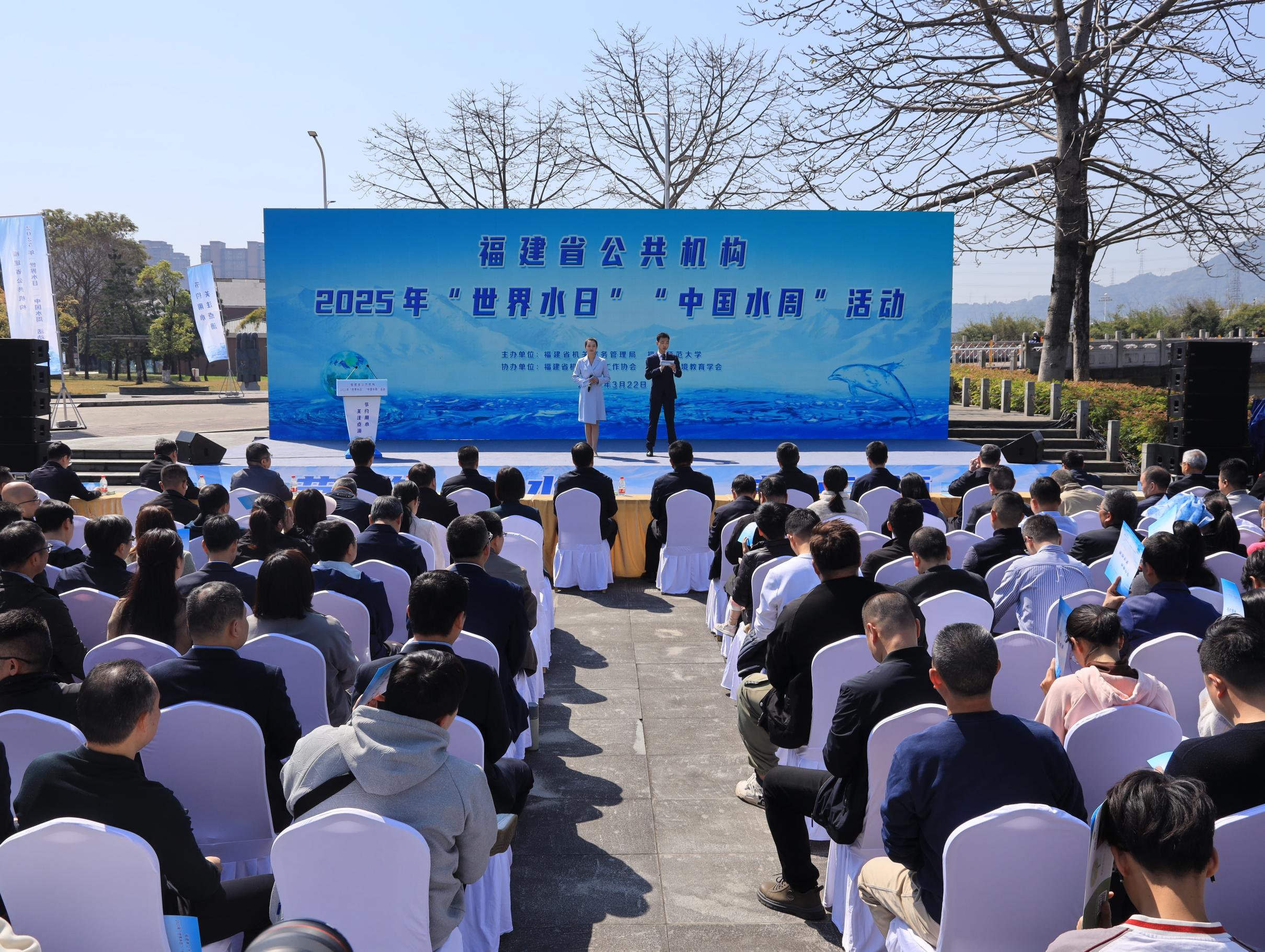 3月22日,由福建省机关事务管理局和我校主办,福建省环境教育学会等单位协办的“节约用水,关注点滴”福建省公共机构2025年“世界水日”“中国水周”宣传活动在旗山校区星槎桥桥头广场举行。省政府副秘书长,省政府办公厅党组成员,省机关事务管理局党组书记、局长李文哲,省水利厅厅长叶敏,省政府办公厅副主任祝海辉,省政协办公厅副主任吴益坚,省工信厅副厅长郑伟,省卫健委副主任林宪,省机关事务管理局副局长兰善斌、俞声,福建医科大学副校长王世鄂,福建理工大学副校长何仕,省发改委二级巡视员林建安,省自然资源厅二级巡视员杨玉章,省交通运输厅二级巡视员谢俊林,福州市委副秘书长、市机关事务管理局党组书记、局长陈武,必一在线平台(中国)官网党委书记潘玉腾、副校长吴剑锋,部分省直机关、医院和必一在线平台(中国)官网相关职能部门负责人,福州市机关管理局领导及部分在榕机关事务管理部门负责人,省环境教育学会和企业公司代表,我校师生代表等200余人参加活动。