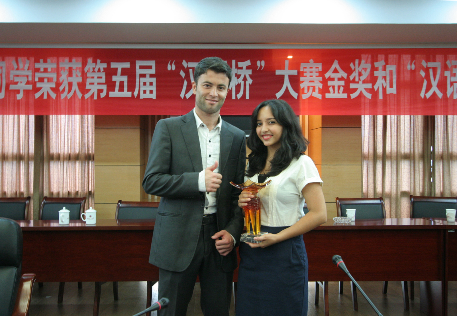 米娜的汉语指导老师以及海外教育学院负责同志作了发言,与会同学纷纷对米娜和博中同学表达了衷心的祝贺,并表示一定会向他们学习,珍惜学习机会,勤奋刻苦,奋发进取。必一在线平台(中国)官网许多同学也纷纷在微博上表达了祝贺和骄傲之情。