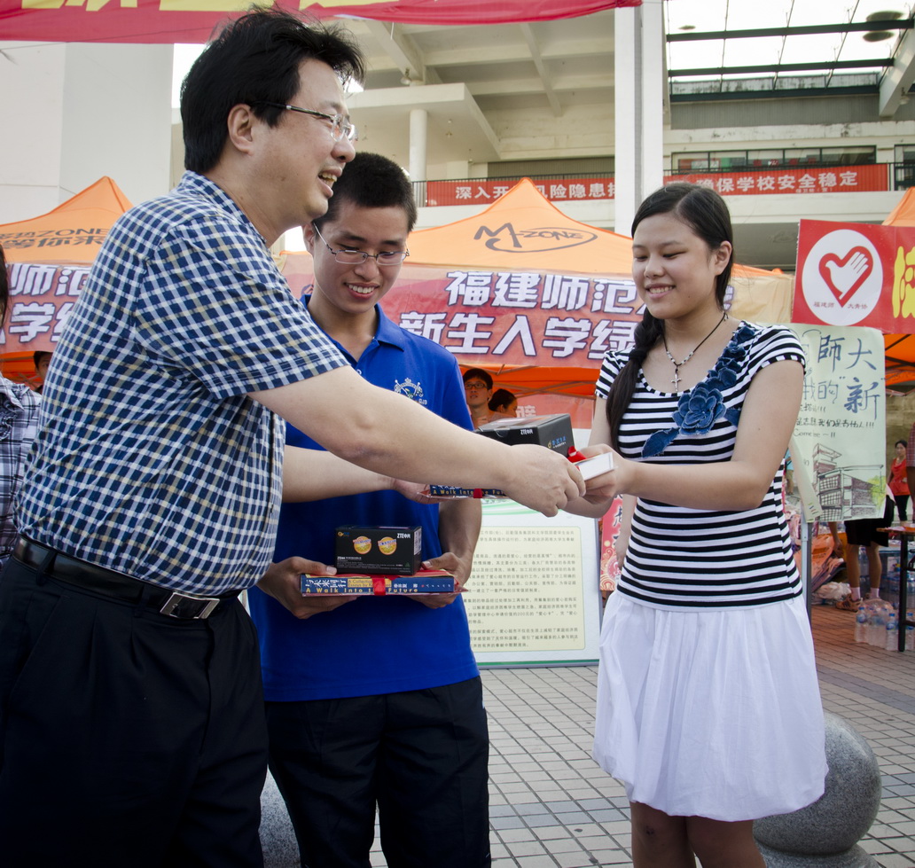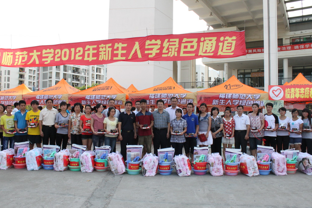 今年,学校在旗山、仓山校区分别设立了3个家庭经济困难学生“绿色通道”,提供缓交学费的登记、发放爱心卡、助学贷款咨询、医保咨询、心理健康咨询等服务。至9月8日下午5点,共为448名家庭经济困难新生提供了“绿色通道”服务,缓交学费总计263万余元。学校还专门制定了“特困新生关爱计划”, 即“十个一”工程:一份300元现金生活补助、一份社会助学金、一份国家助学金、一个价值200元的生活用品爱心包、一本励志书、一名作为大学学习生活联系人的高年级优秀学生干部、一个勤工助学岗位、一套军训服装、一部免费手机(含200元话费)、一份免费医保。当天下午,黄汉升校长等领导到“绿色通道”现场慰问了家庭经济困难新生,并为27名特困新生颁发了生活补助、爱心大礼包等物品,让他们刚入学就感受到学校的温馨。