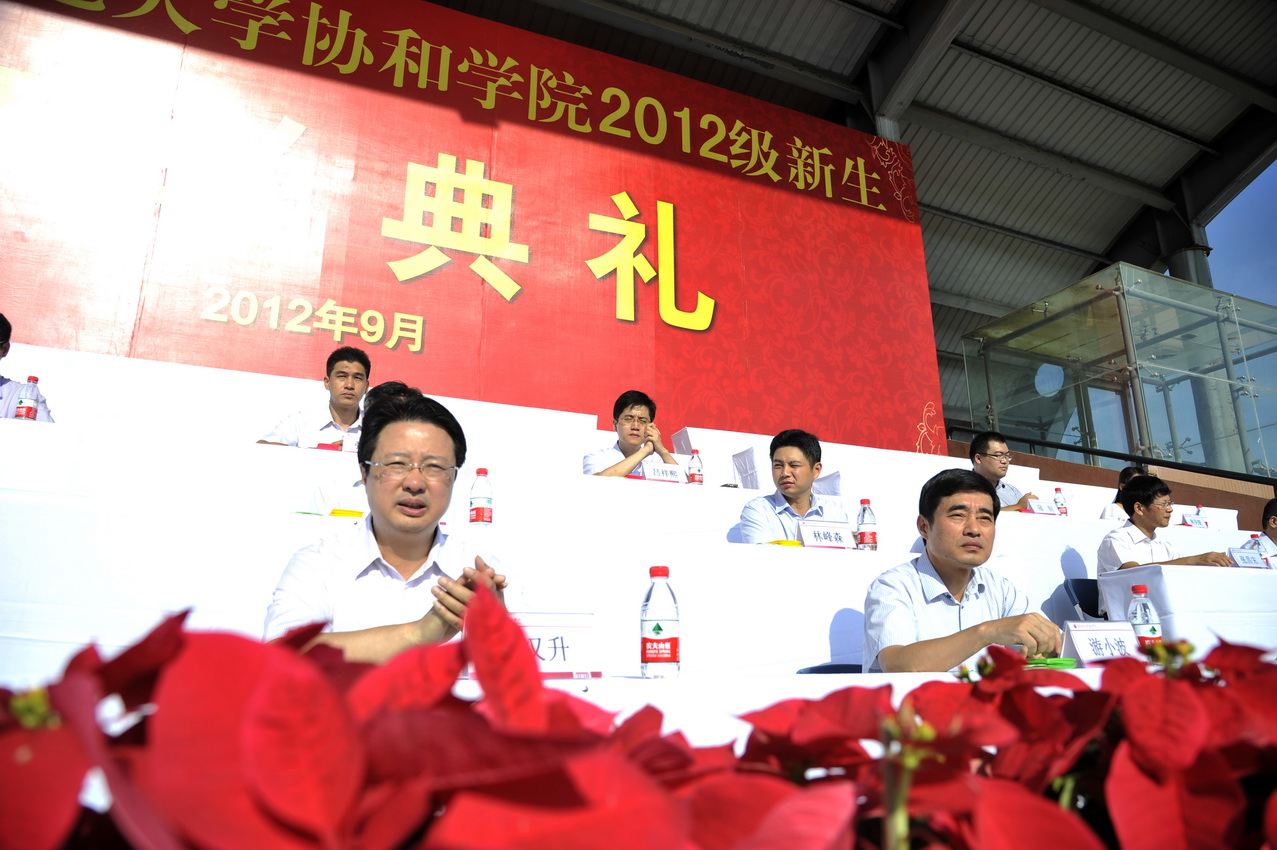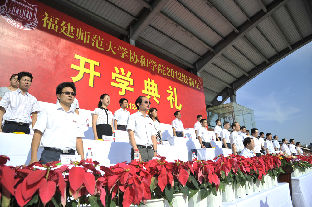 9月9日上午,必一在线平台(中国)官网协和学院2012级新生开学典礼在旗山校区东区田径场隆重举行。校长、协和学院董事长黄汉升,校党委副书记、学院党委书记游小波,必一在线平台(中国)官网资产经营公司总经理、学院副董事长赵钦,财务处处长、学院董事金天钦,学院领导班子成员,相关职能部门负责人、各系主任、党总支书记,全体2012级新生及辅导员参加了开学典礼。