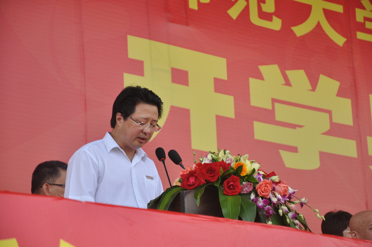 校长黄汉升教授在开学典礼上作了热情洋溢的讲话。他首先代表全体师生员工,欢迎新同学加入福建师大这个大家庭。在简要介绍学校基本情况和特点后,黄校长送给2012级新生三句话。第一句话是,学会思考,培养健全人格和诚信品质。希望同学们在今后的学习生活中,不仅注重知识养料的汲取,而且要重视锤炼自己的品格,不断加强自身修养,培养自己乐观向上的品格、豁达包容的精神和诚信负责的作风。第二句话是,学会规划,让自己的大学生活更加精彩。希望同学们在校期间主动参与、大胆实践,积极尝试各种有意义的事情,开阔视野、增长知识、健全人格。第三句话是,学会担当,培养以天下为己任的责任感。希望每一位新同学都要有一种舍我其谁的气魄,有一种引领社会风范的气度,有一种仰望星空的气派,树立远大理想,拉高自己的标杆,始终走在时代的前列,努力成为国家的栋梁、社会的中坚。