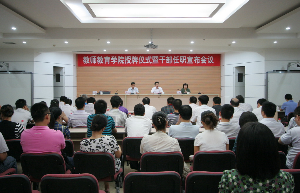 会上,李敏副校长宣读了学校关于独立设置教师教育学院的通知和余文森、陈清华两位同志职务任免的通知。