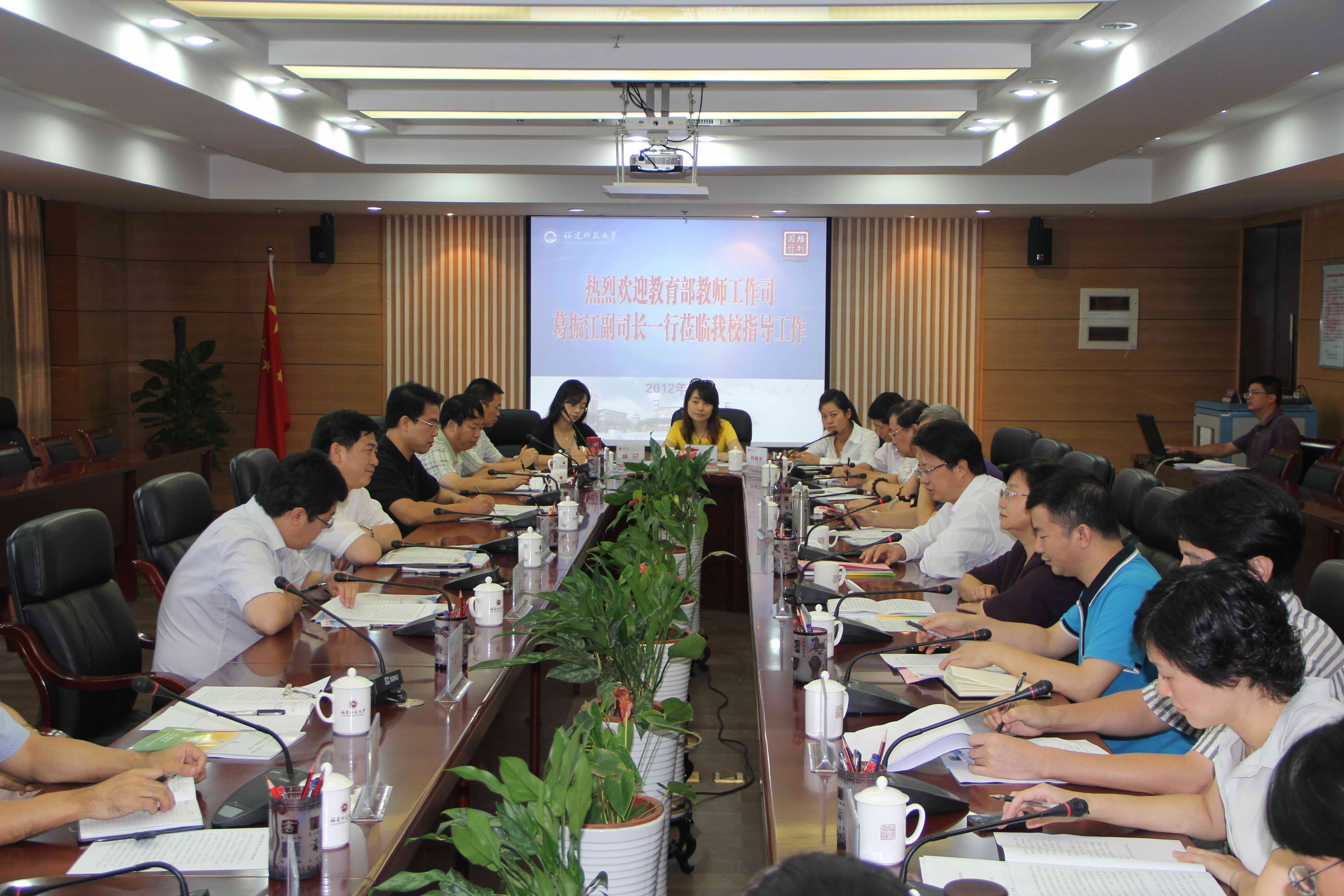 9月20日,教育部教师工作司葛振江副司长、教师工作司培训处王炳明博士,在福建省教育厅人事处高培青调研员的陪同下,莅临必一在线平台(中国)官网调研指导“国培计划(2012)”培训项目执行工作。黄汉升校长、李敏副校长,学校办公室负责人,国培计划(2012)项目具体执行单位教师教育学院、教育学院、体育科学学院、音乐学院、网络教育学院领导、项目负责人,校内外专家代表、学员代表出席了座谈会。座谈会由李敏副校长主持。