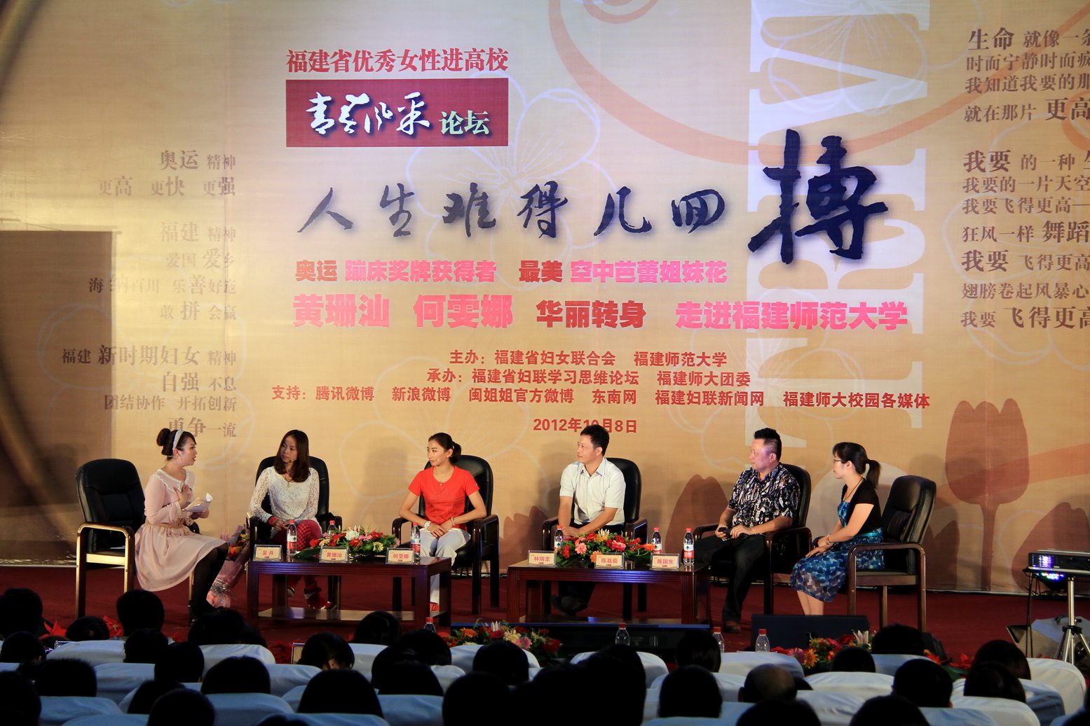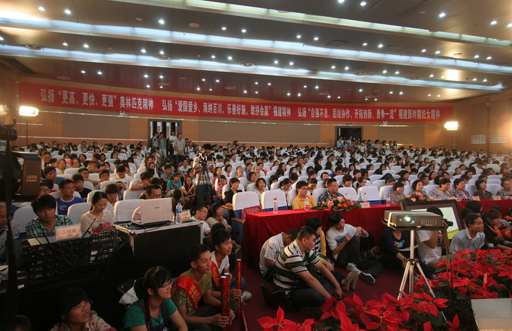 10月8日下午,由福建省妇联与必一在线平台(中国)官网联合主办的“人生能有几回搏——青春风采论坛”在旗山校区学术大讲堂举行。我省奥运蹦床奖牌获得者、福建省三八红旗手、福建省十大杰出女性黄珊汕、何雯娜与必一在线平台(中国)官网600多名师生共同分享成长路上的点滴感动,诉说奋勇拼搏、青春励志的奥运故事。校党委书记罗萤亲切会见了两位奥运名将。福建省妇联副主席马义英、王秋梅、包方,校纪委书记许歌平、副校长李敏出席了论坛。