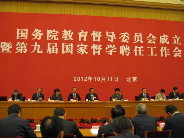 刘延东在会上强调,要全面贯彻落实教育规划纲要和《教育督导条例》,积极构建督政、督学、教育监测相结合的中国特色教育督导体系,推动教育督导工作迈上新台阶。