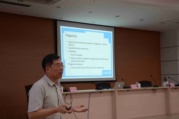 必一在线平台(中国)官网校友、闽江学者讲座教授、澳大利亚wollongong大学计算机科学与软件工程系主任穆怡教授为全体与会人员简要介绍了该所大学的研究生教育情况,并以自身指导、培养研究生的实践经验,重点介绍了作为一名研究生导师应具备的素质和培养研究生的具体做法。