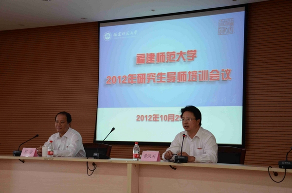 培训会议于10月29日下午在旗山校区第九会议室举行。校党委书记罗萤、校长黄汉升,各有关学院分管研究生工作领导,2012年新增列的博士生导师和硕士生导师,研究生秘书和研究生辅导员参加了会议。