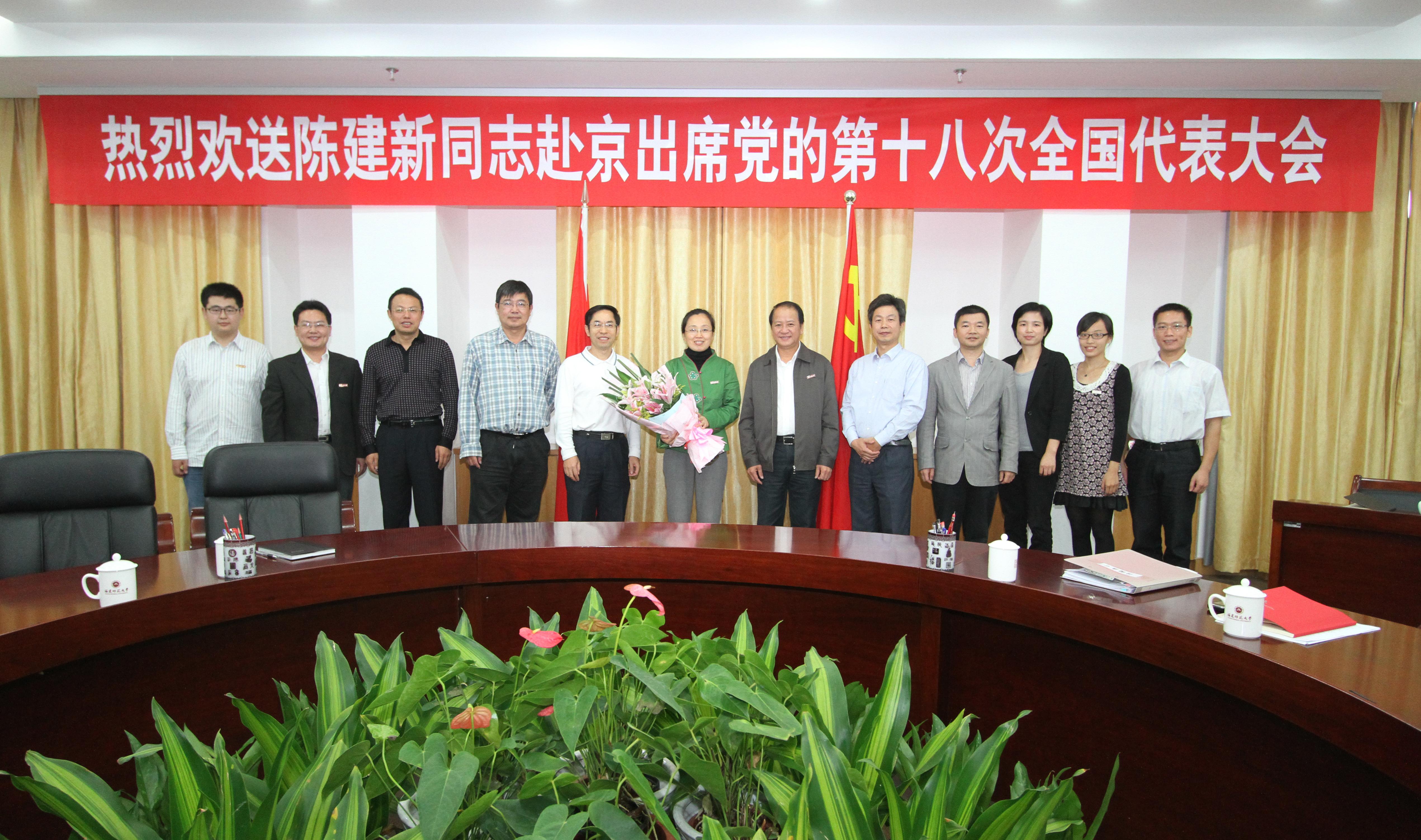 陈建新同志在会上表示,听完罗书记的发言心情激动、深受鼓舞。她认为,当选党的十八大代表,是一种荣誉更是一份信任,是各级领导和广大师生党员支持的结果。她表示,一定会牢记要求,以饱满的精神、良好的状态,积极建言献策,不辱使命,努力为校争光,做一名合格的党代表。