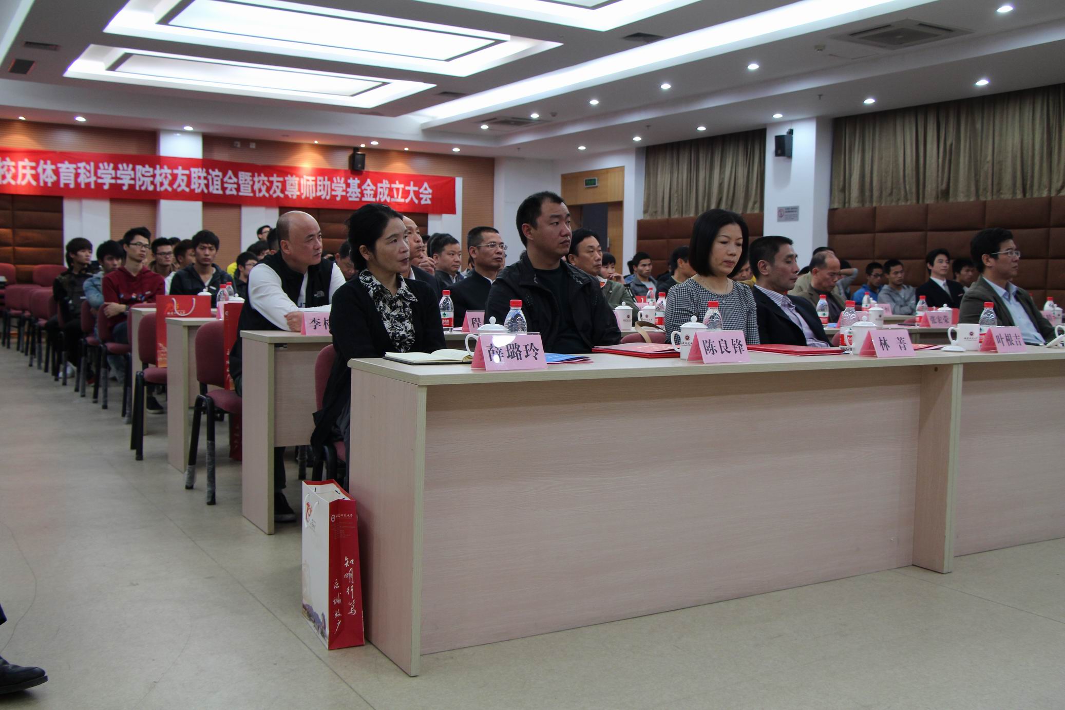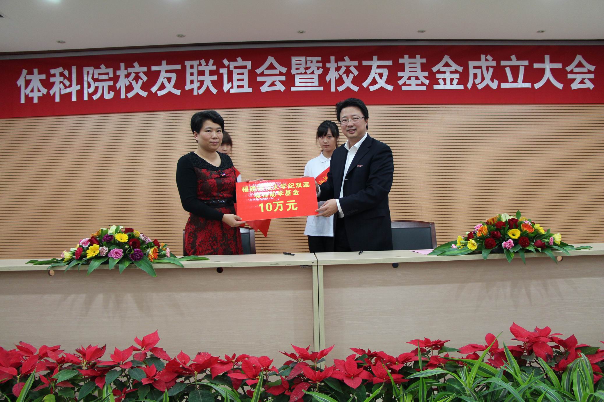 会上,体育科学学院校友共捐资30万元,设立了“福建师大纪双蕊尊师助学基金”、“福建师大林俊杰尊师助学基金”、“福建师大叶葆华尊师助学基金”、“福建师大体育科学学院95级健防班尊师助学基金”、“福建师大体育科学学院95级专科班尊师助学基金”,用于奖励体育科学学院表现突出的师生,资助经济困难的师生。