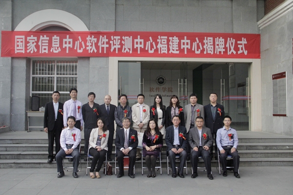 在各位来宾、老师和同学们的共同见证下,汪文顶和李荔共同为国家信息中心软件评测中心福建中心揭牌。